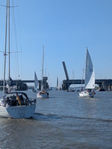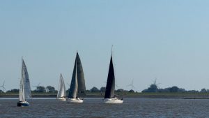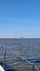 Die Frühanreisenden am Freitag mussten sich bei recht holprigen Bedingungen durchbeißen. Die am Samstag angekommenen Crews hatten zwar eine tolle Kreuz vor sich, kamen jedoch zum Teil verspätet an – der Ostwind hatte das Wasser in Brunsbüttel „etwas weggeblasen“, was für verzögertes Ablegen sorgte.