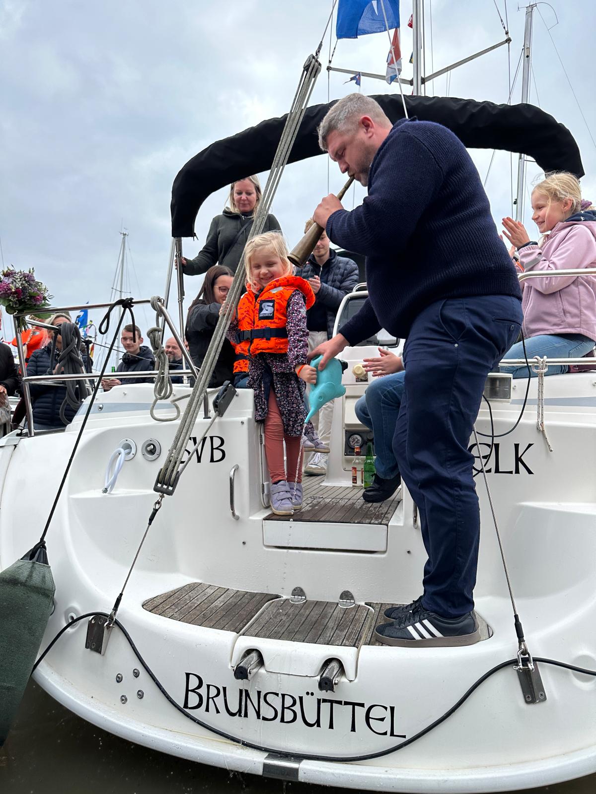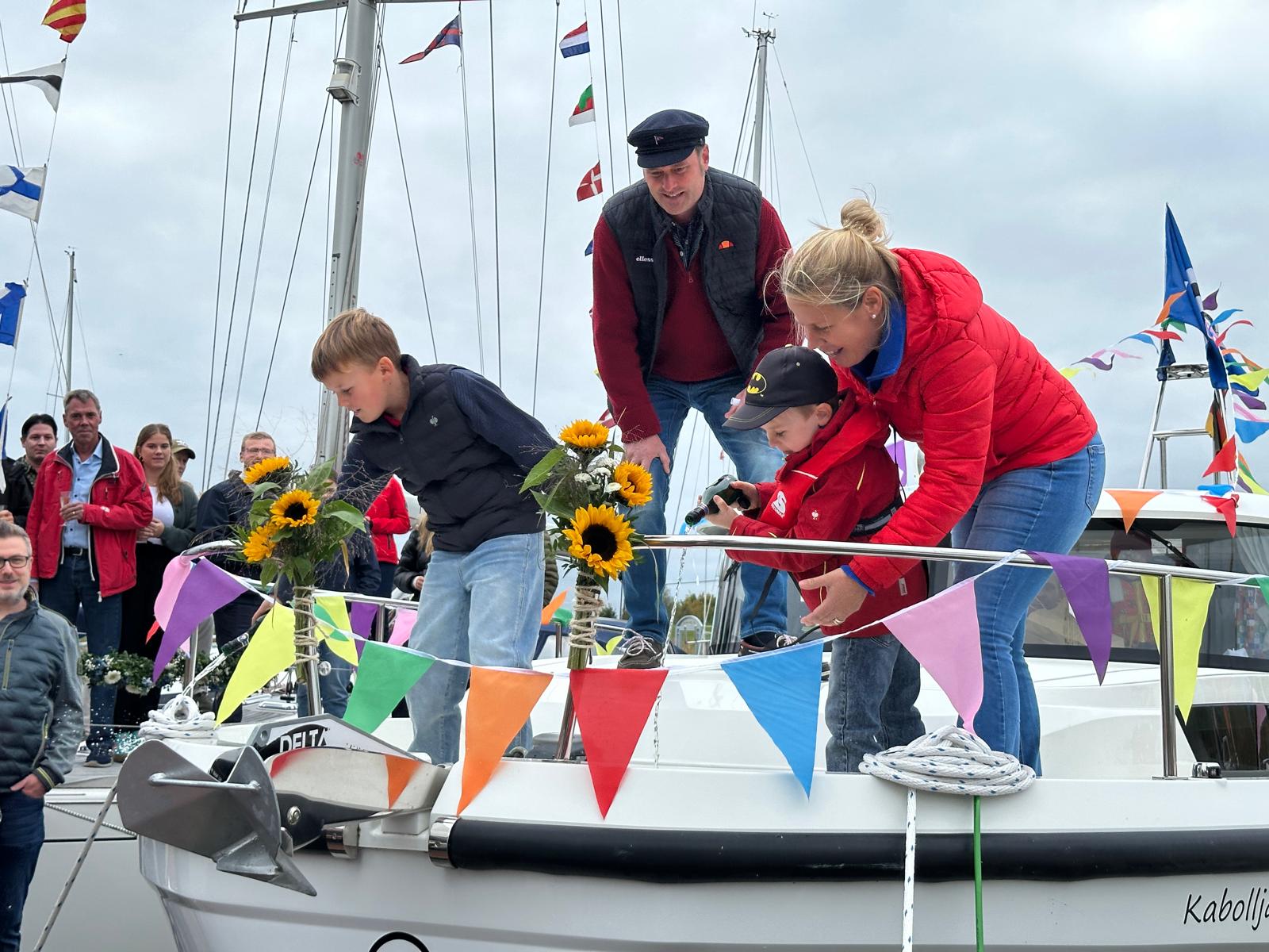 Die Maxine von Familie Warnecke, die Kabollja von Familie Magnussen und die FJELK von Familie Ludewig wurden mit Sekt oder Elbwasser und guten Wünschen getauft. Auch die Pania startete mit ihren neuen Eignern Andreas und Susanne offiziell in ihr fünftes SVB-Kapitel.